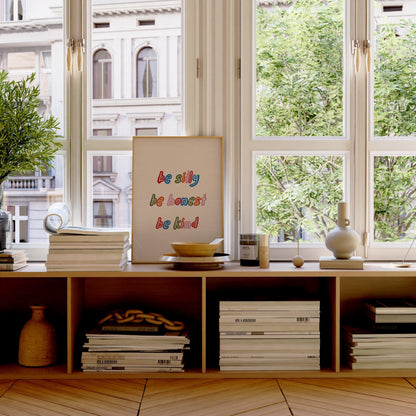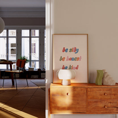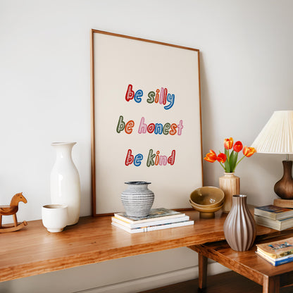 Be Silly Be Honest Be Kind Print, Ralph Waldo Emerson Poster, Positive Affirmations Decor, Cute Colorful Home Wall Art in hand drawn illustration makes the perfect decor to add a funky, eclectic & modern touch to your office, classroom or kids room walls.