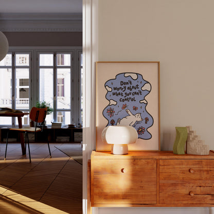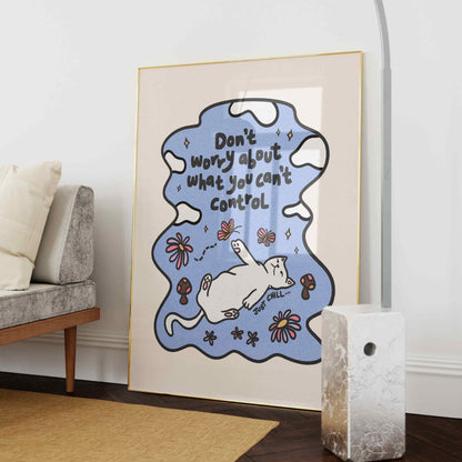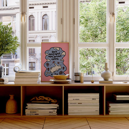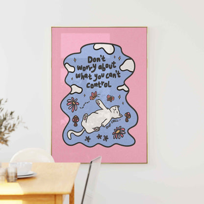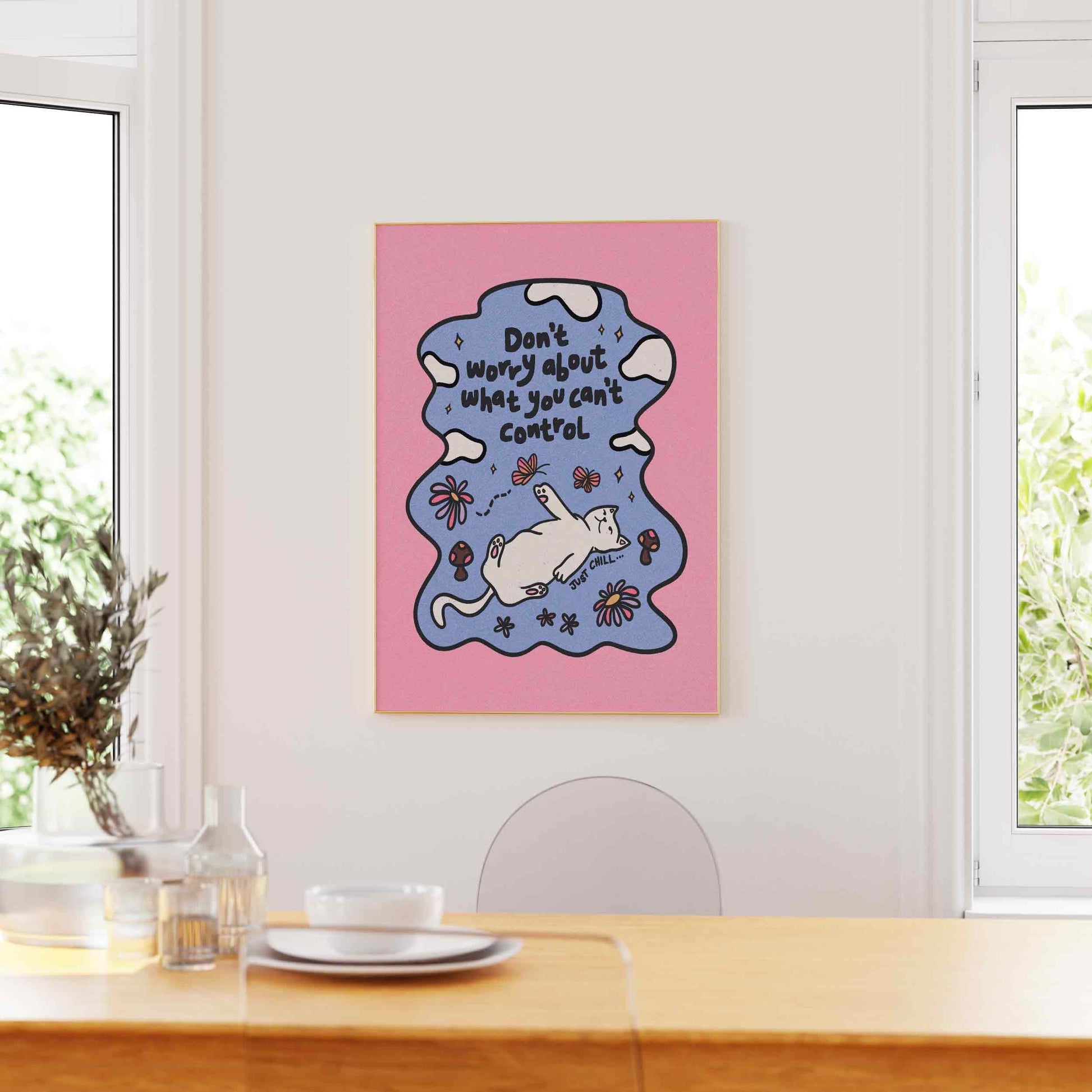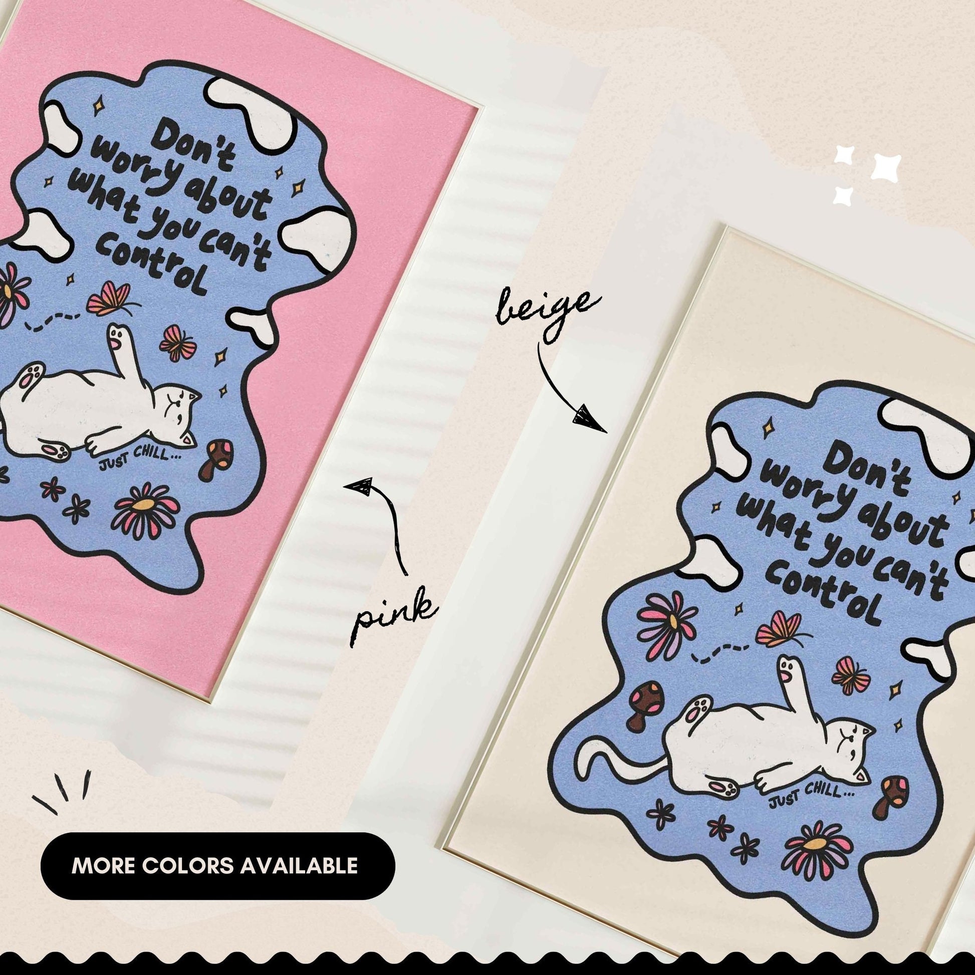 Don‘t Worry Print, Positive Affirmations Poster, Kids Motivational Decor, Cute Cat Wall Art, Office Desk Decor in hand drawn illustration makes the perfect poster to add a funky, eclectic & modern touch to your living room, office desk or bedroom walls.