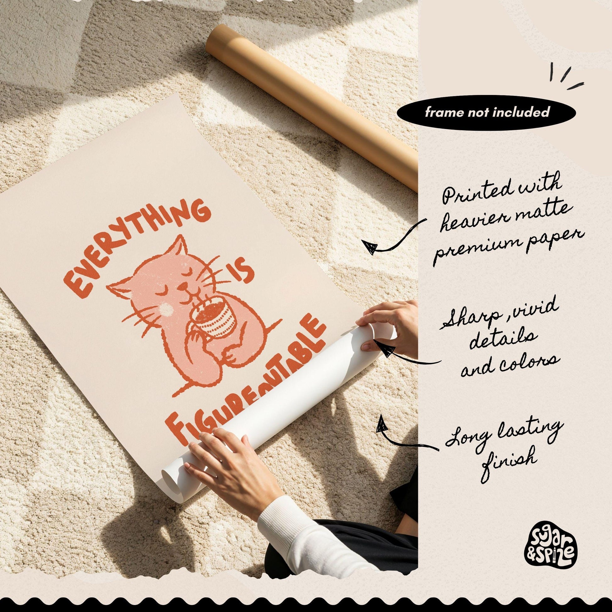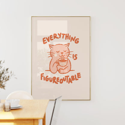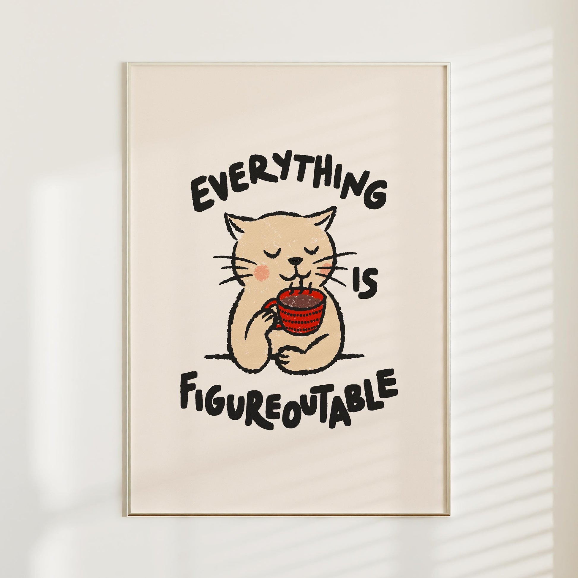 Everything Is Figureoutable Print, Positive Affirmations Office Desk Poster, Kids Motivational Decor, Cute Cat Wall Art in hand drawn illustration makes the perfect decor to add a touch of funky, eclectic & dopamine spice to your office desk, classroom or kids room walls.