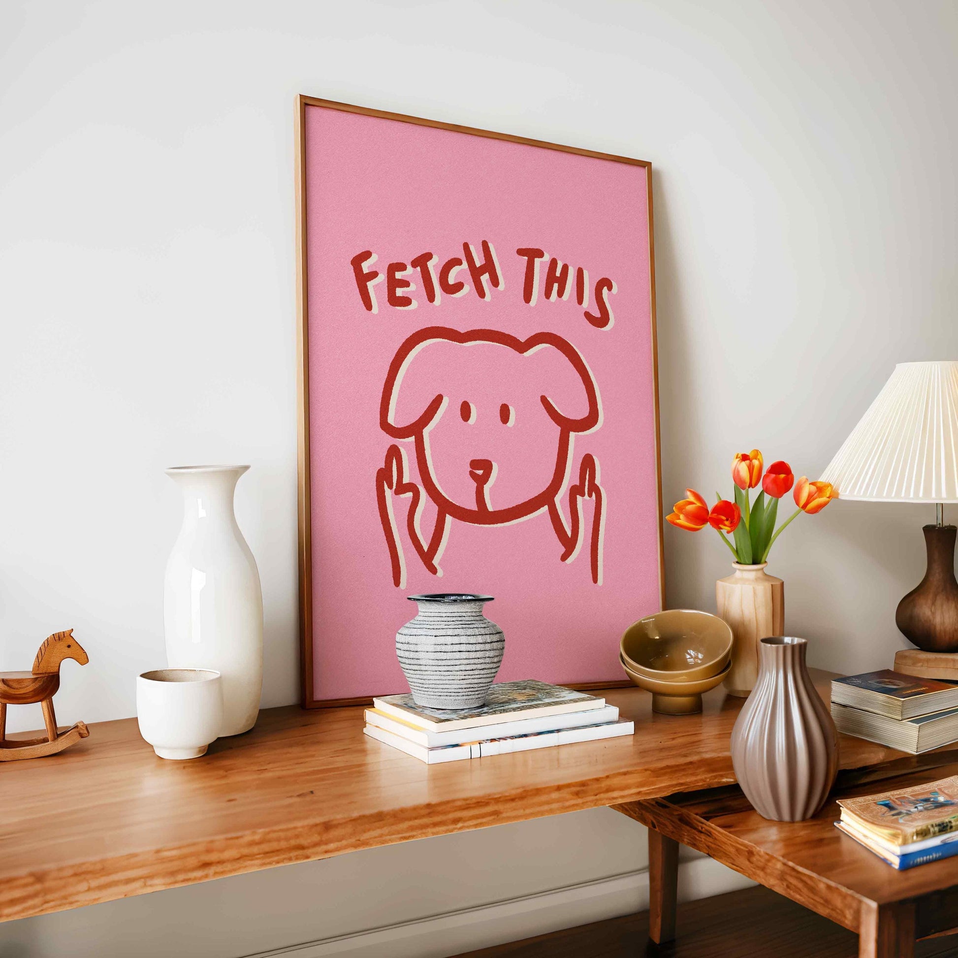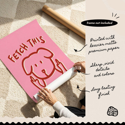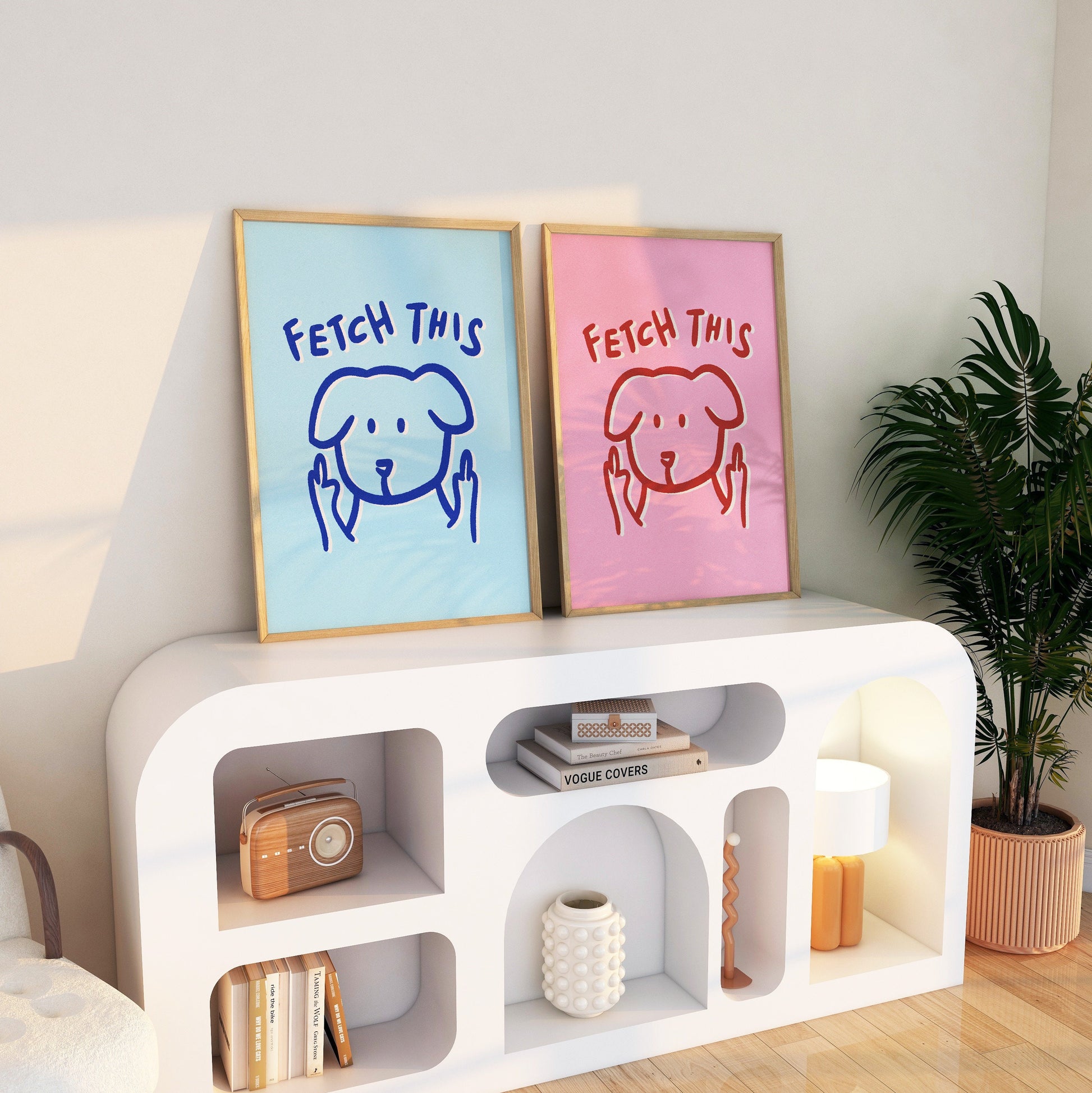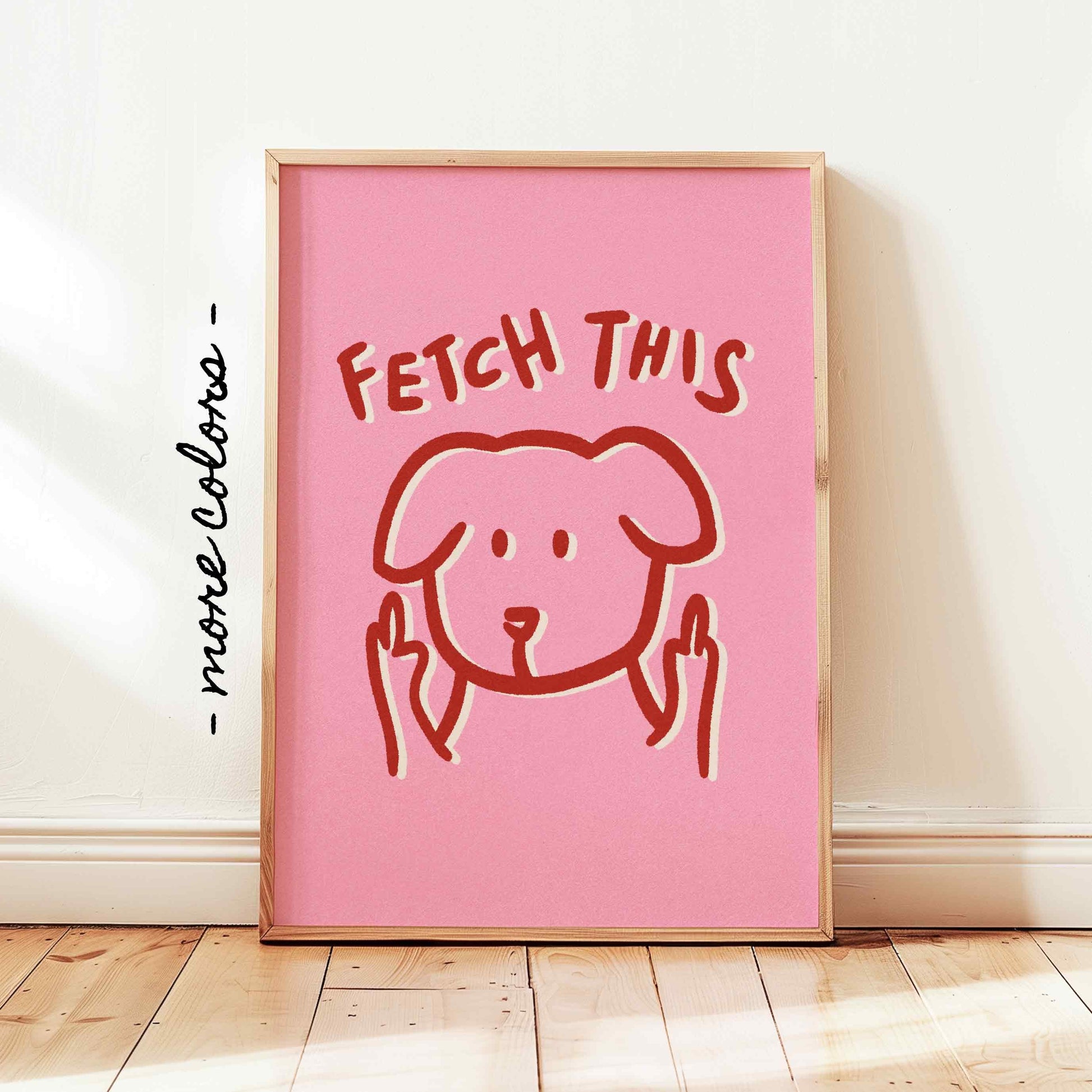 Fetch This Dog Print Poster, Cute Kawaii Dog Print, Preppy Apartment Decor, Funny Dog Lover Gift, Hand Drawn Dog Sketch in hand drawn illustration makes the perfect poster to add a funky, eclectic & modern touch to your office desk, living room, bedroom or kids room walls.