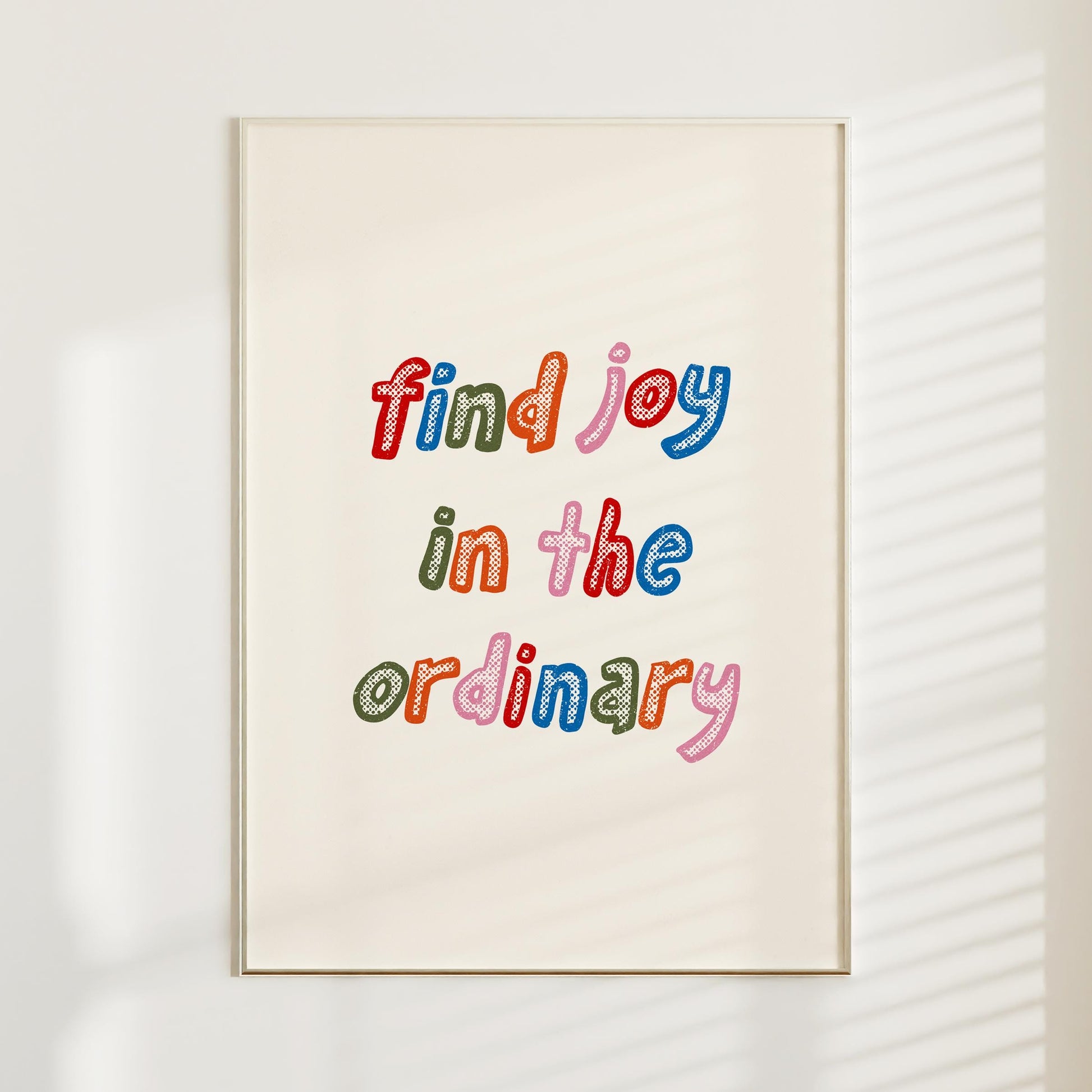 Find Joy In The Ordinary Print, Positive Affirmations Retro Poster, Kids Motivational Decor, Cute Office Wall Art in hand drawn illustration makes the perfect decor to add a funky, eclectic & modern touch to your office, classroom or kids room walls.