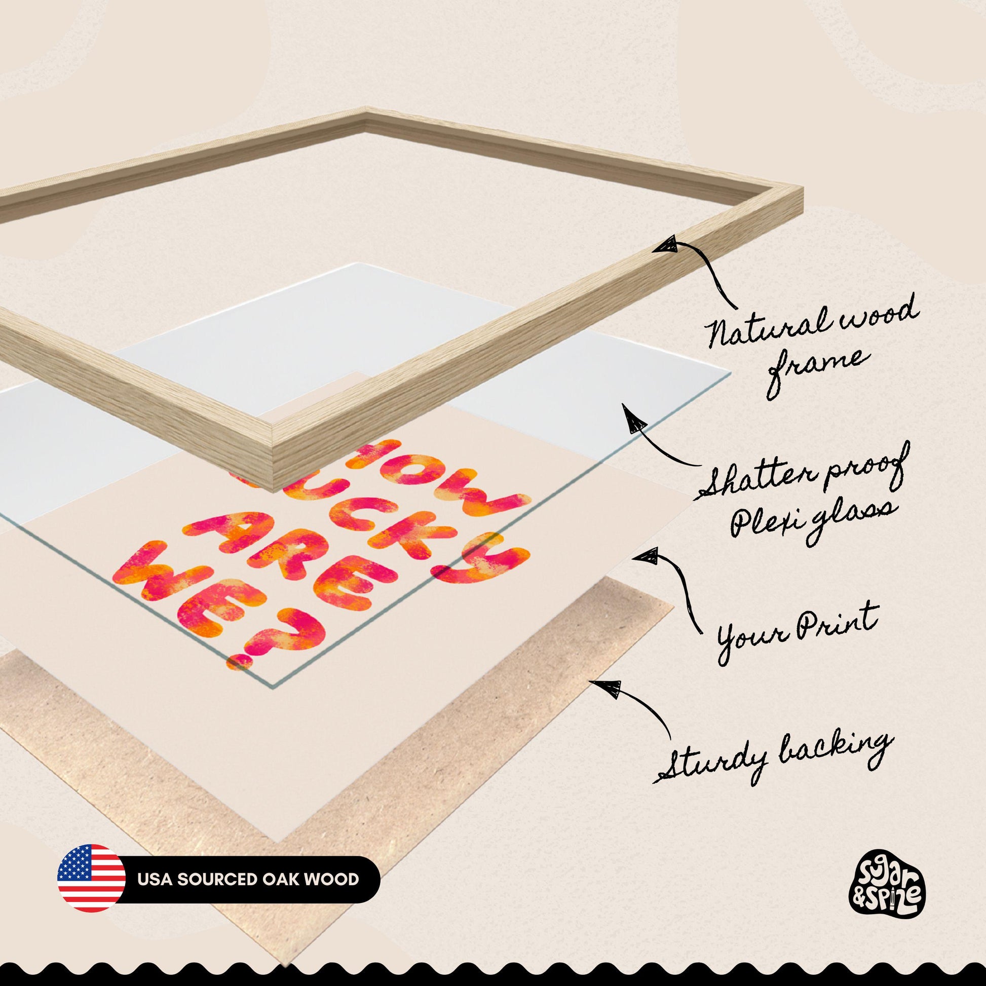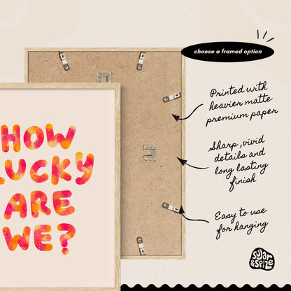 How Lucky Are We Print, Trendy Aesthetic Dopamine Poster, Dorm College Lucky You Wall Art, Girly Positive Decor in hand drawn illustration makes the perfect decor to add a touch of funky, eclectic & dopamine spice to your office desk, classroom or kids room walls.