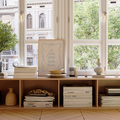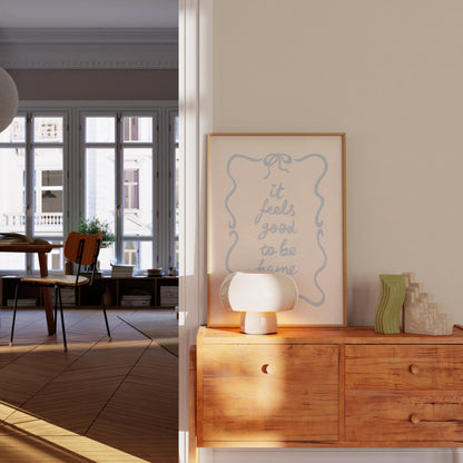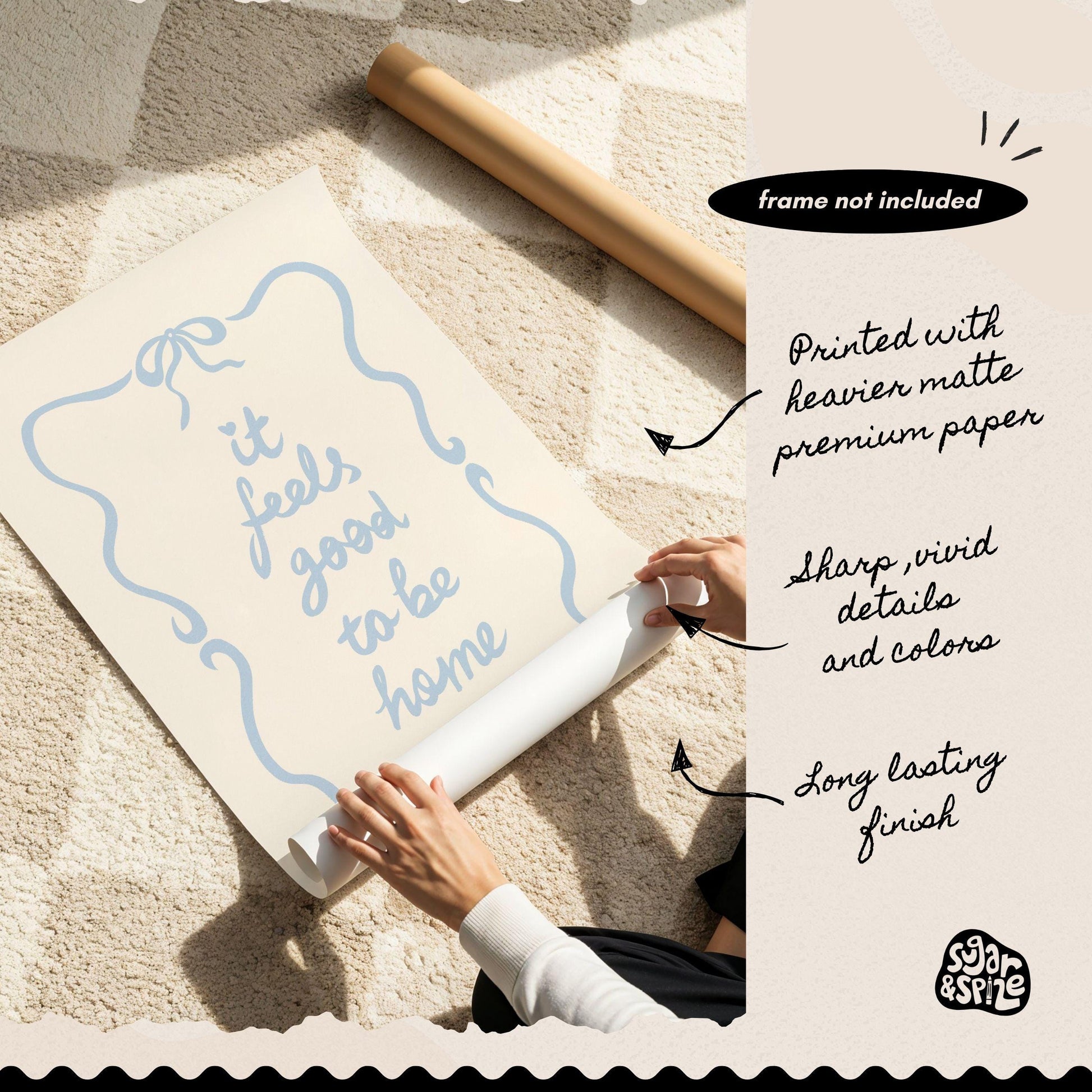 It Feels Good To Be Home Print, Positive Affirmations Pastel Poster, Homebody Wall Art, Girly Minimalistic Decor in hand drawn illustration makes the perfect decor to add a funky, eclectic & modern touch to your office, classroom or kids room walls.