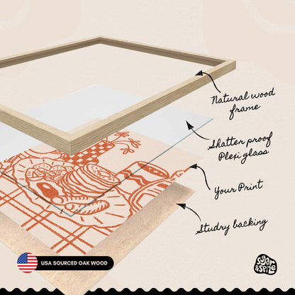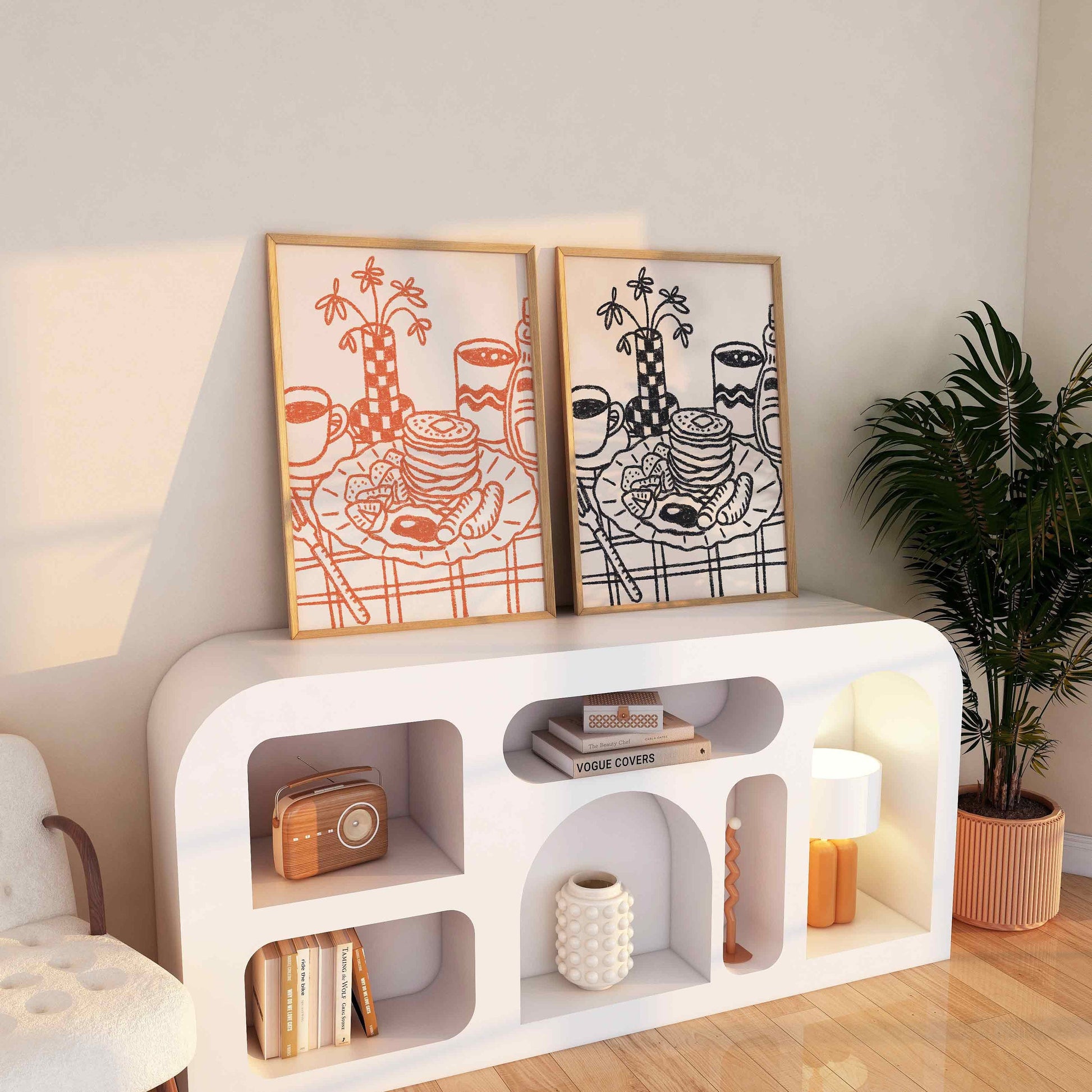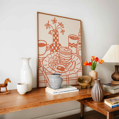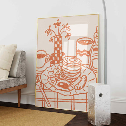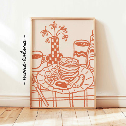 Pancake Breakfast Print, Dopamine Wall Art Poster, Breakfast Bar Prints, Retro 70s Kitchen Hand Drawn Wall Decor in hand drawn illustration makes the perfect kitchen poster to add a funky, eclectic & modern touch to your kitchen or dining walls.