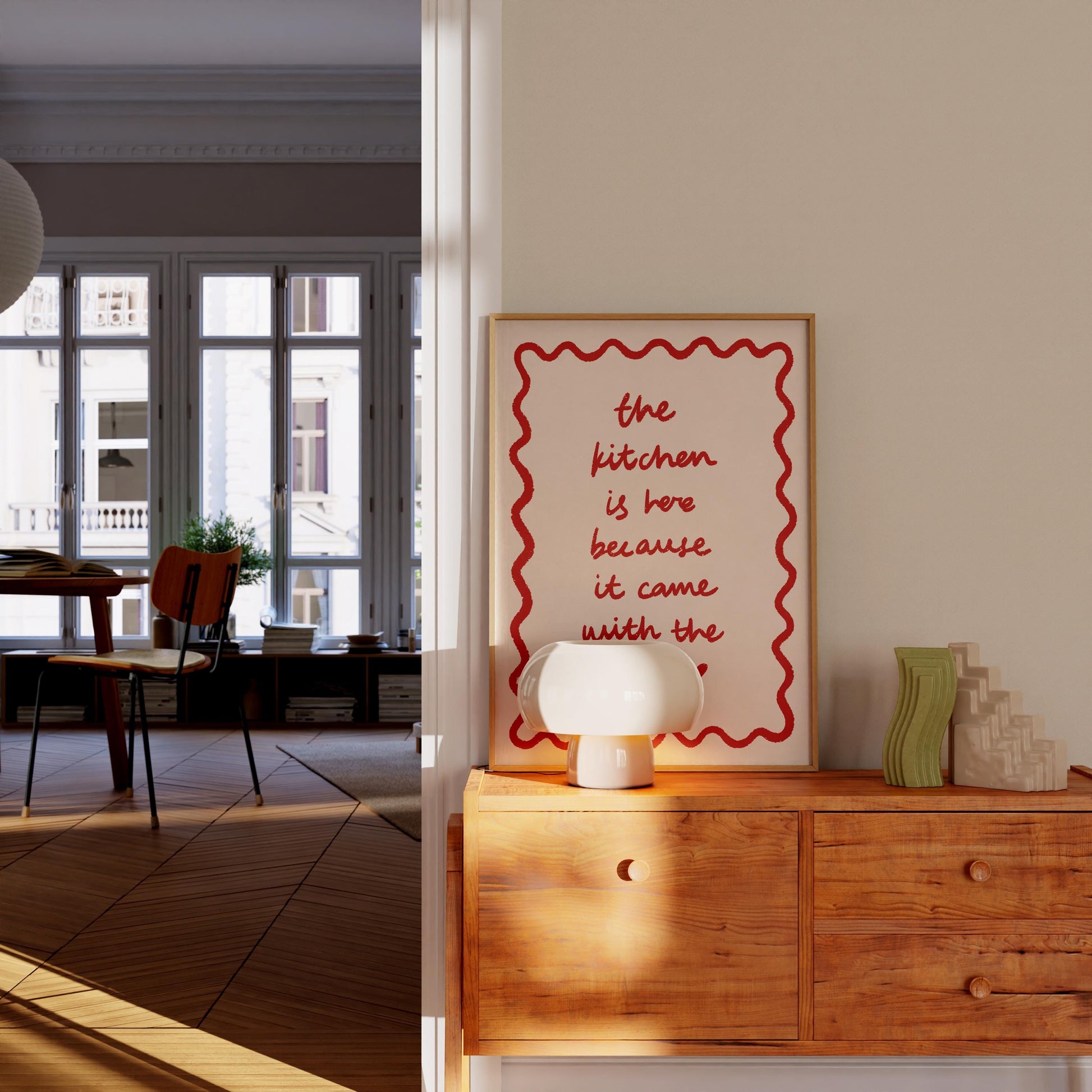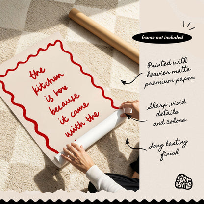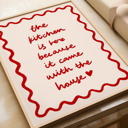 Retro Funny Kitchen Print, Wavy Stripes Heart Poster, Came With The House, Minimalist Girly Decor in hand drawn illustration makes the perfect poster to add a funky, eclectic & modern touch to your kitchen or dining walls.