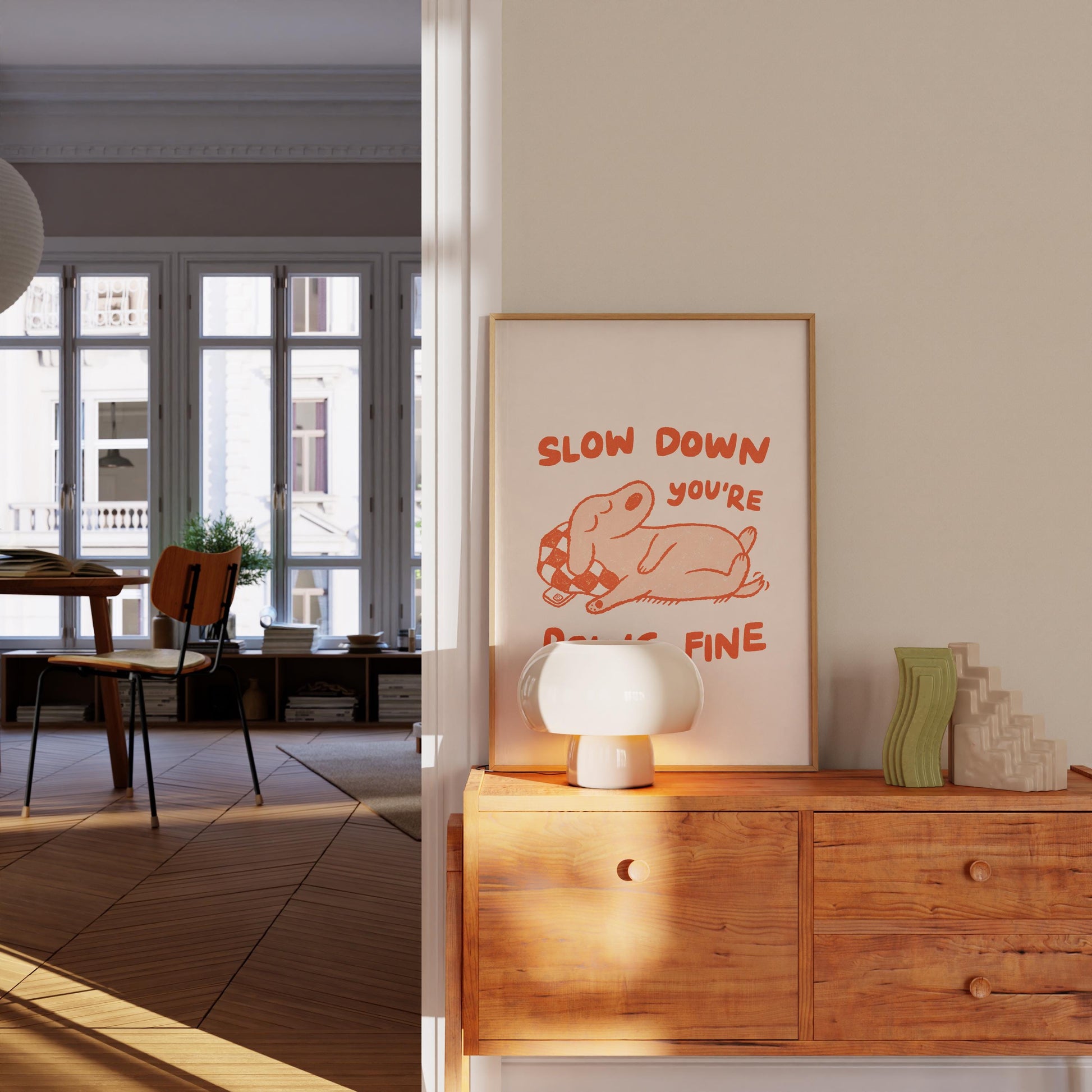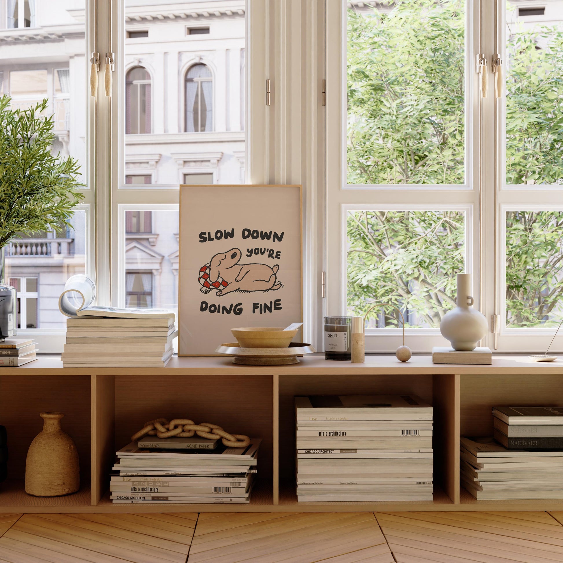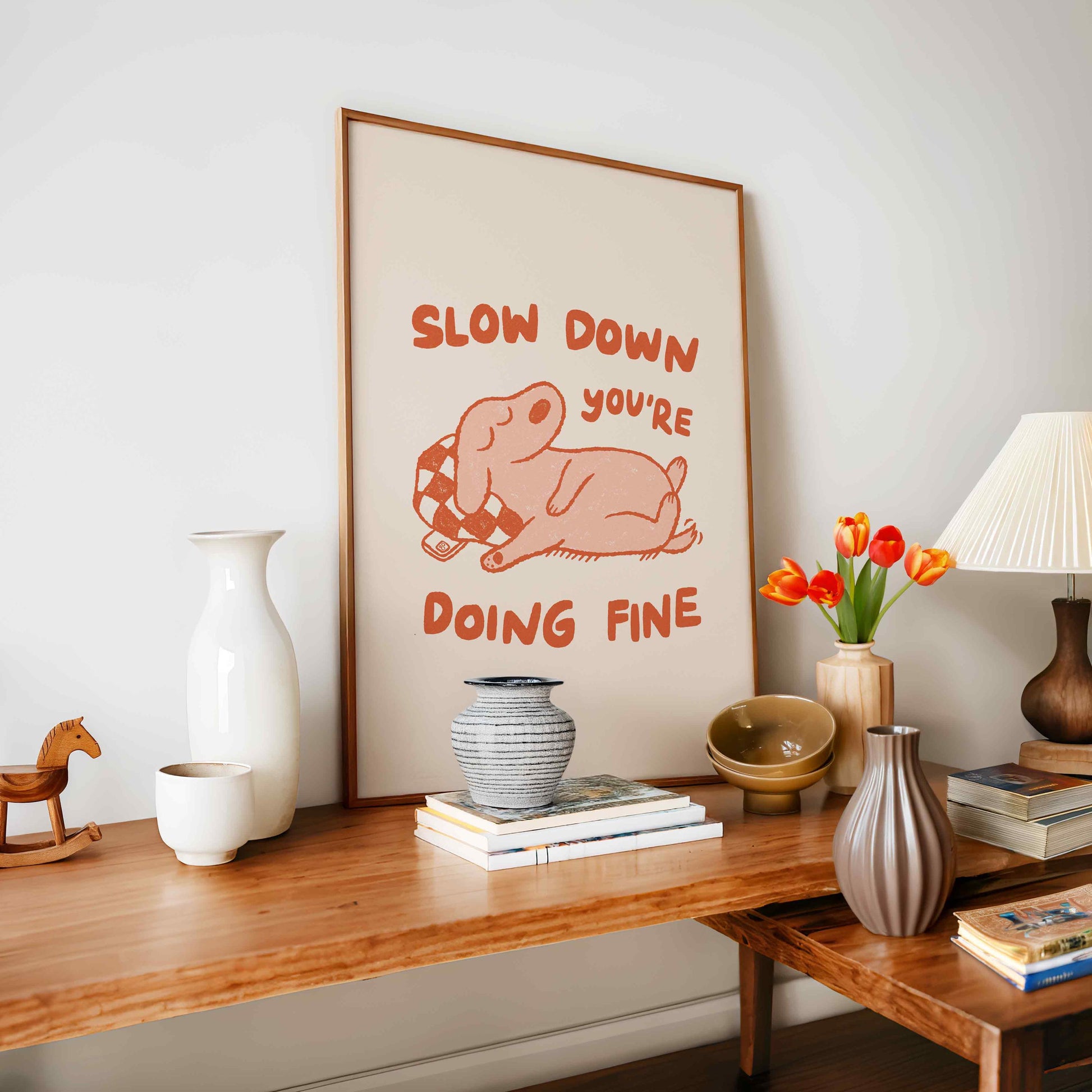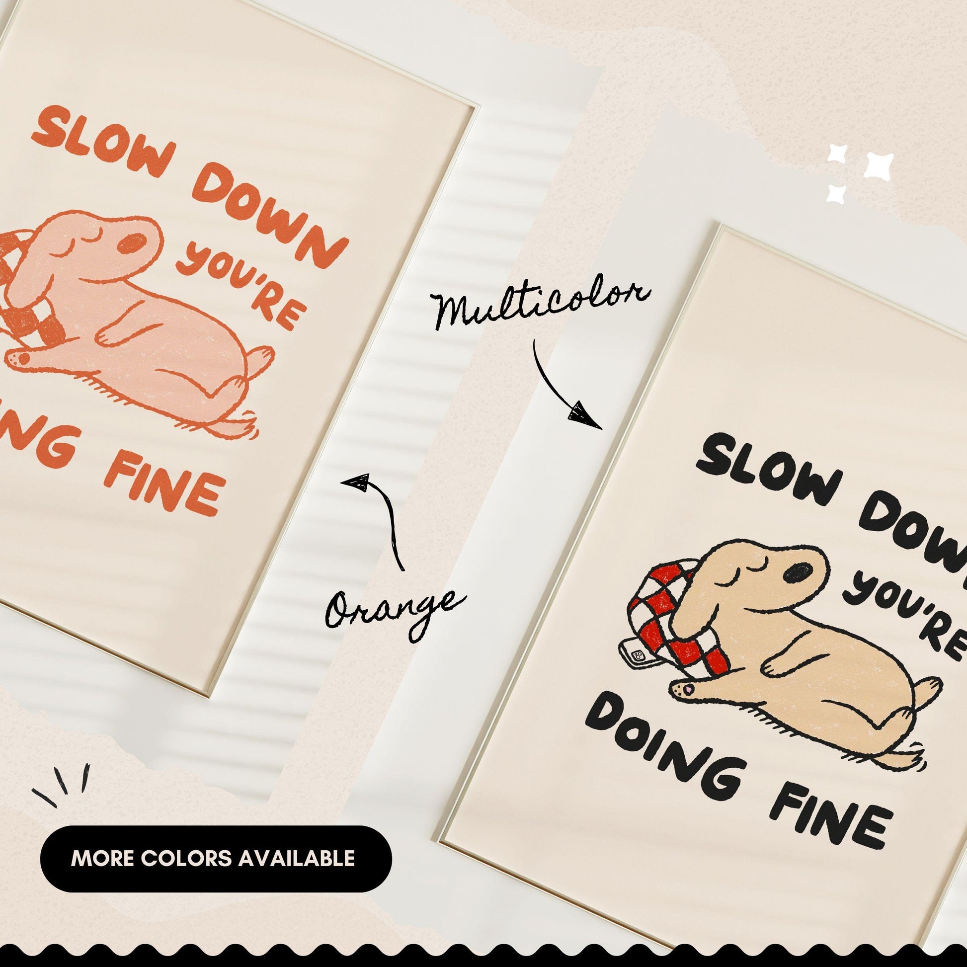 Slow Down You‘re Doing Fine Print, Positive Affirmations Poster, Kids Motivational Decor, Cute Office Wall Art, Mental Health Decor in hand drawn illustration makes the perfect decor to add a funky, eclectic & modern touch to your office, classroom or kids room walls.