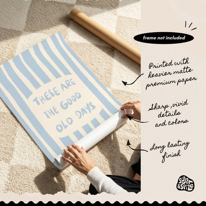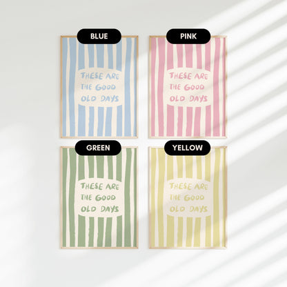 These Are The Good Old Days Print, Positive Affirmations Poster, Kids Motivational Decor, Cute Playroom Wall Art, Pastel Nursery Decor in hand drawn illustration makes the perfect decor to add a funky, eclectic & modern touch to your office, classroom or kids room walls.