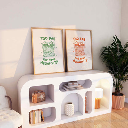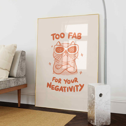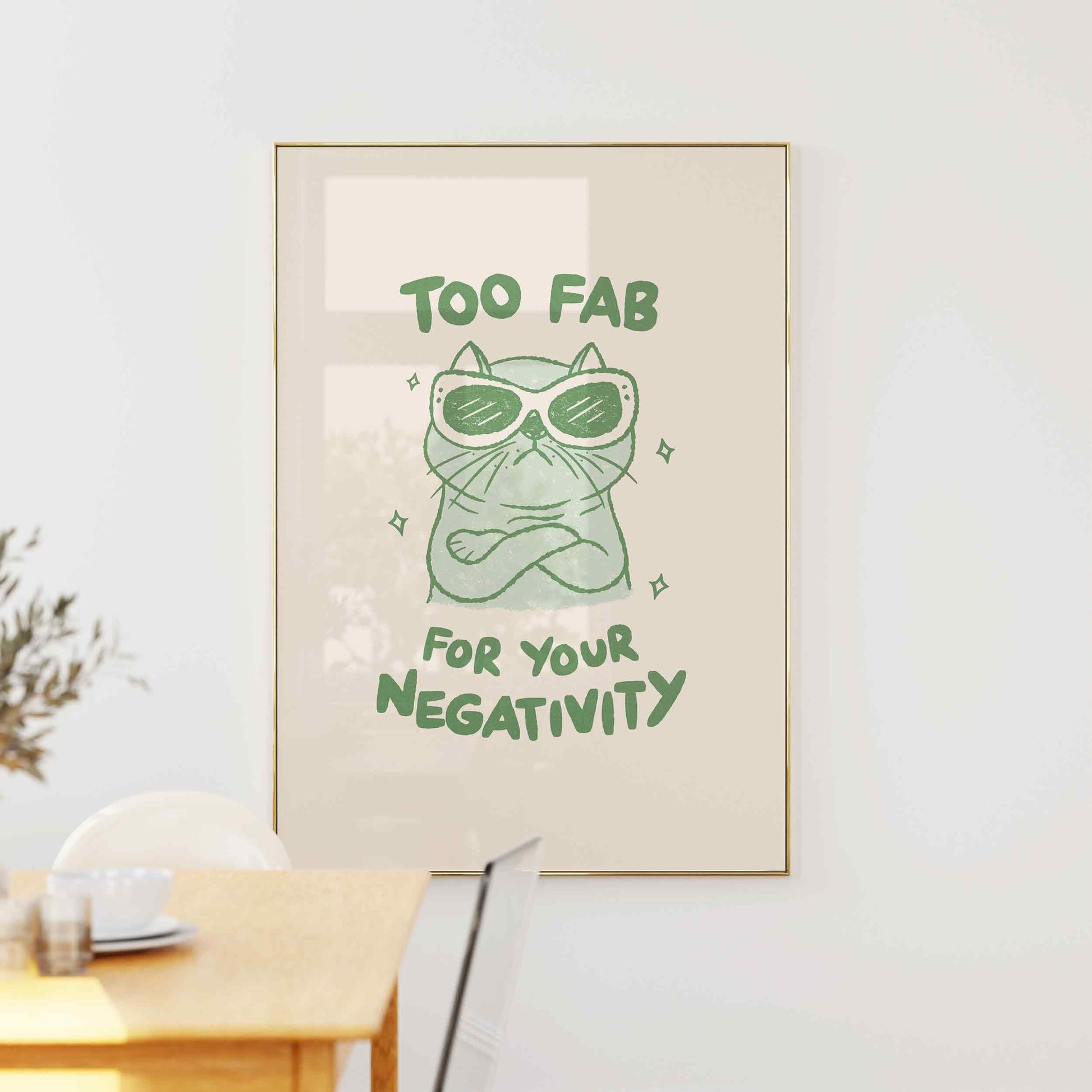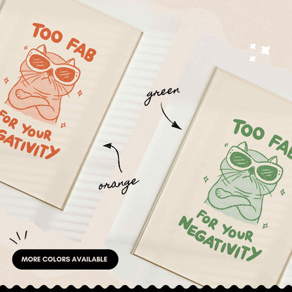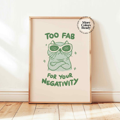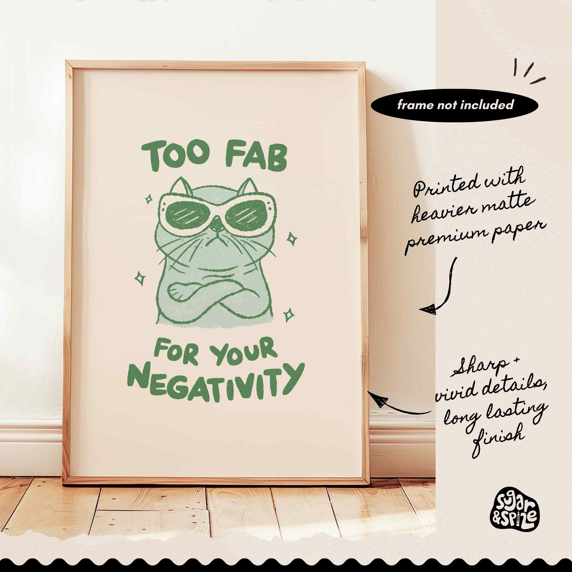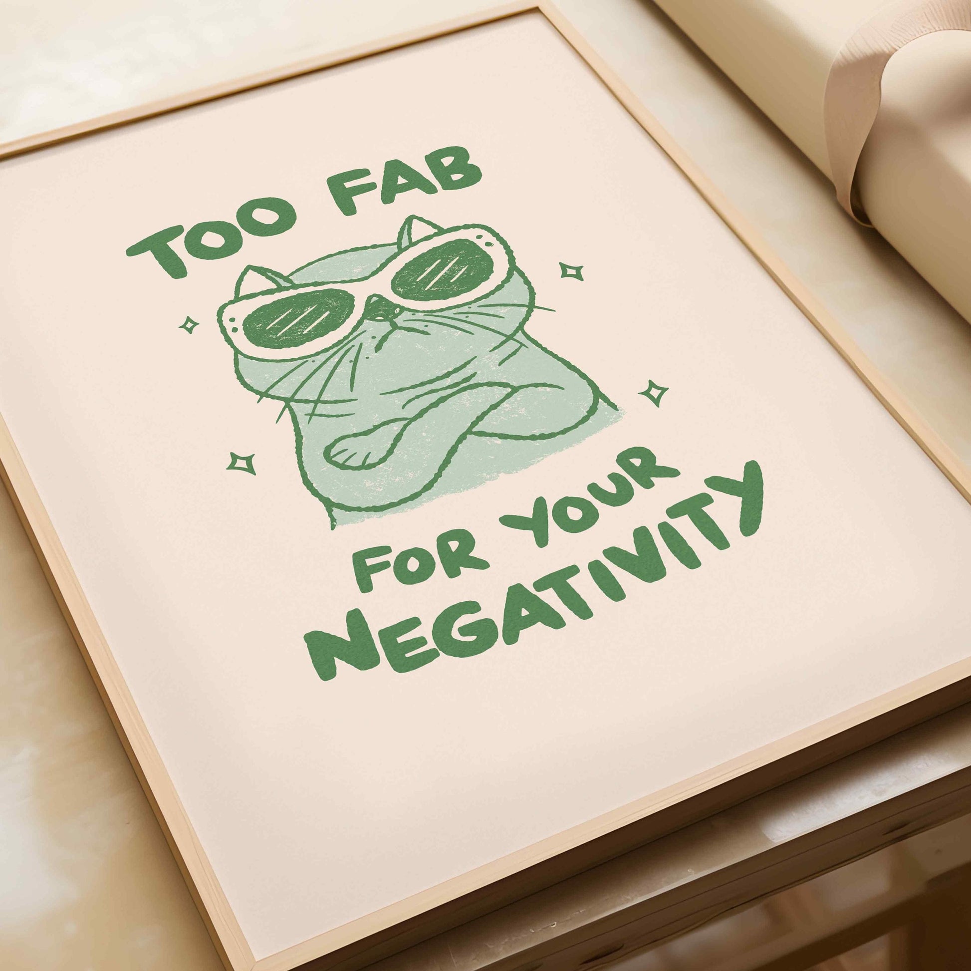 Too Fab For Your Negativity Print, Positive Affirmations Poster, Kids Motivational Decor, Cute Cat Desk Decor, Mental Health Wall Art in hand drawn illustration makes the perfect decor to add a touch of funky, preppy & modern spice to your office, classroom or kids room walls.