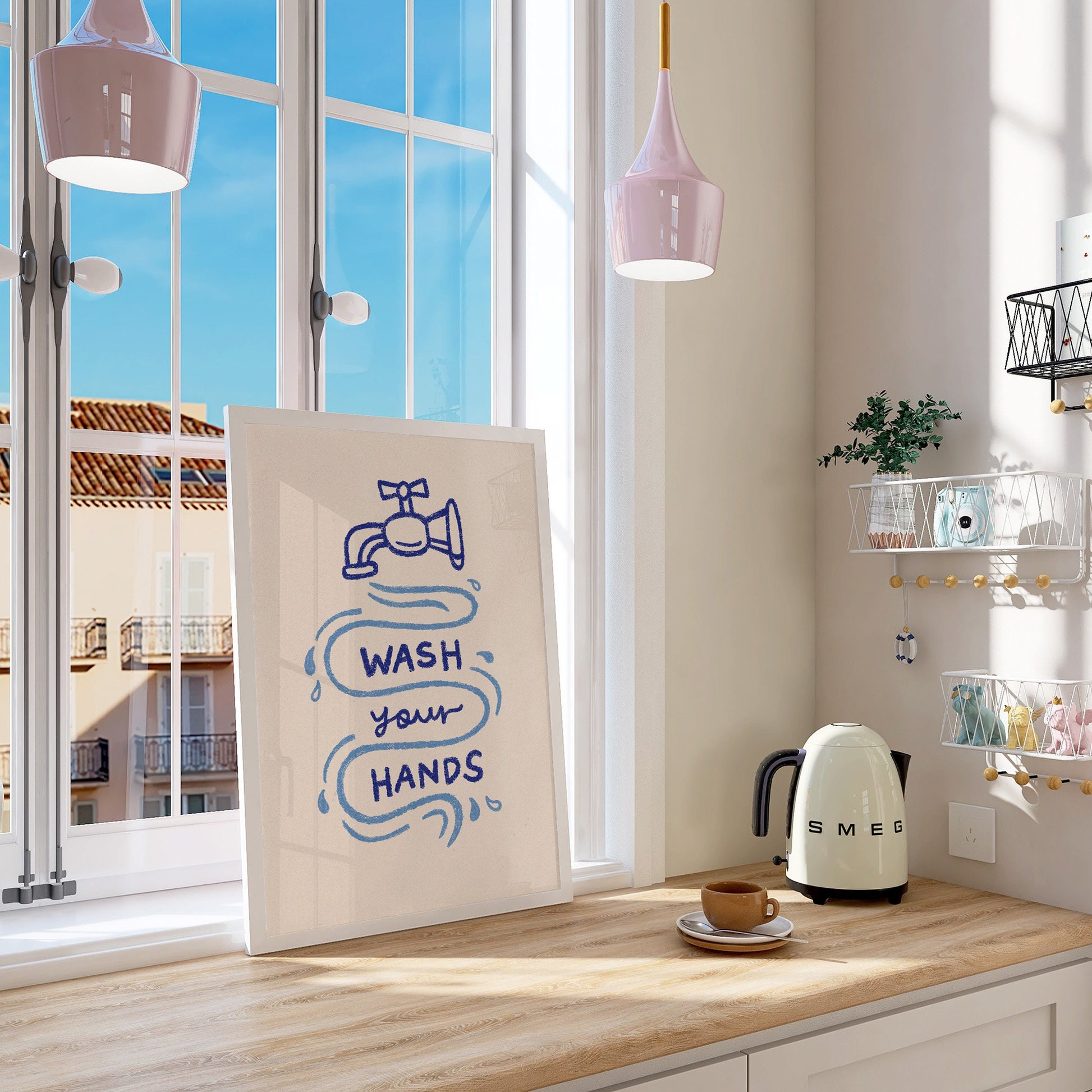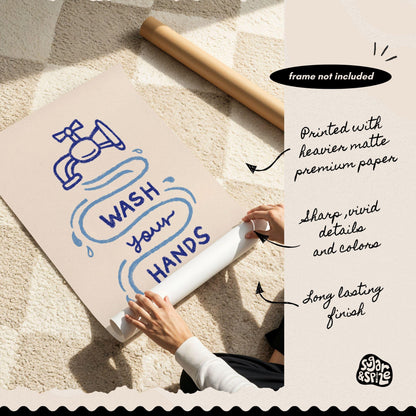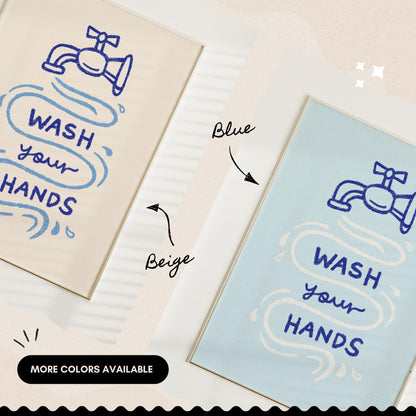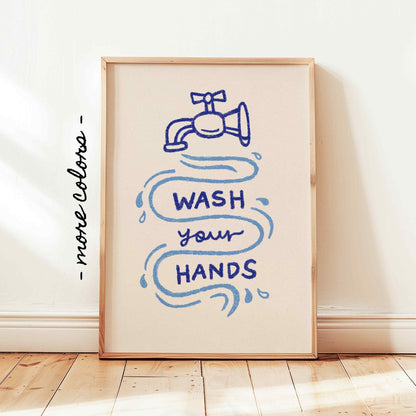 Wash Your Hands Print, Cute Bathroom Poster, Classroom Toilet Wall Decor, Trendy Guest Check Art, Wash Room Gift in hand drawn illustration makes the perfect decor to add a touch of funky, eclectic & dopamine spice to your bathroom or toilet room walls.