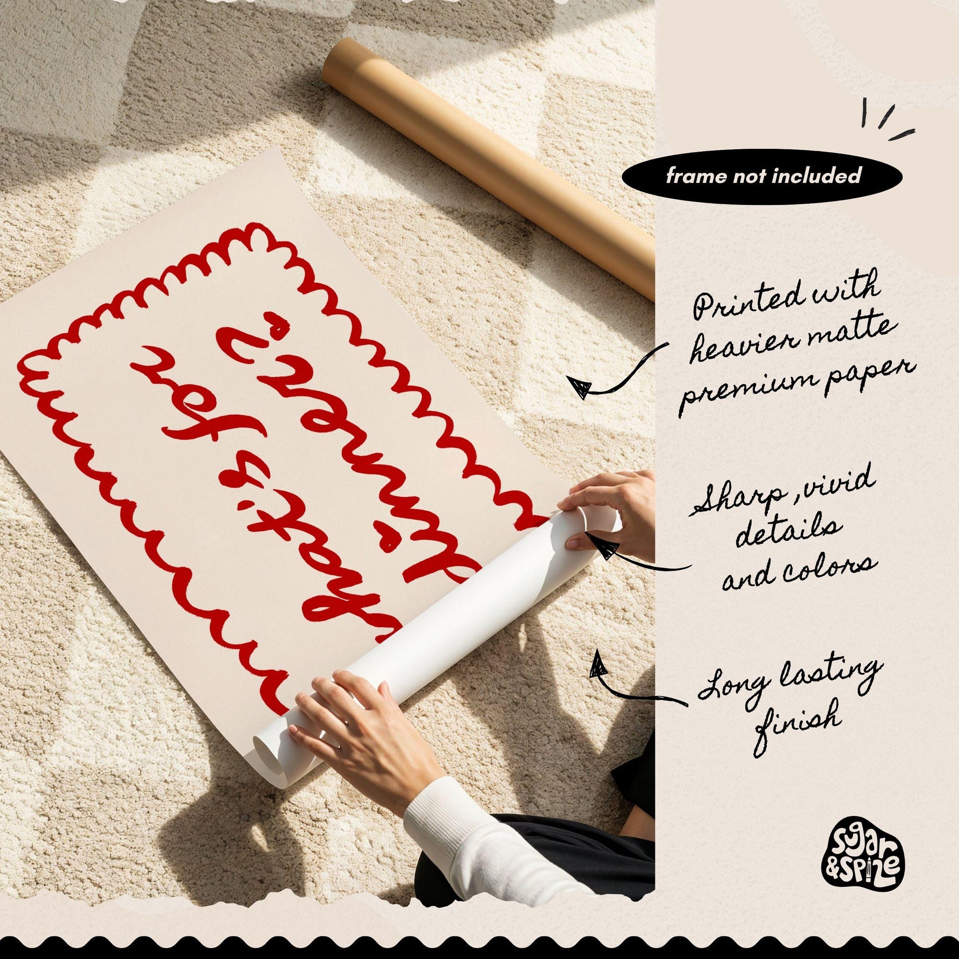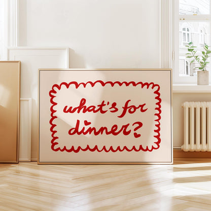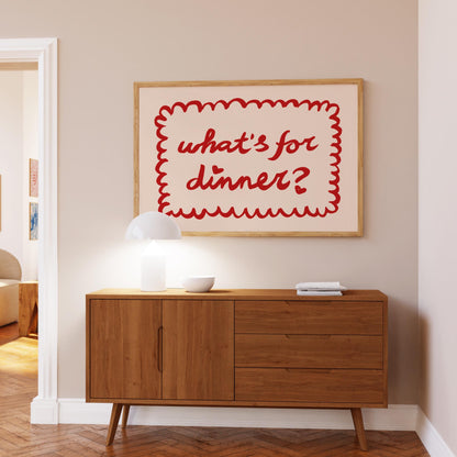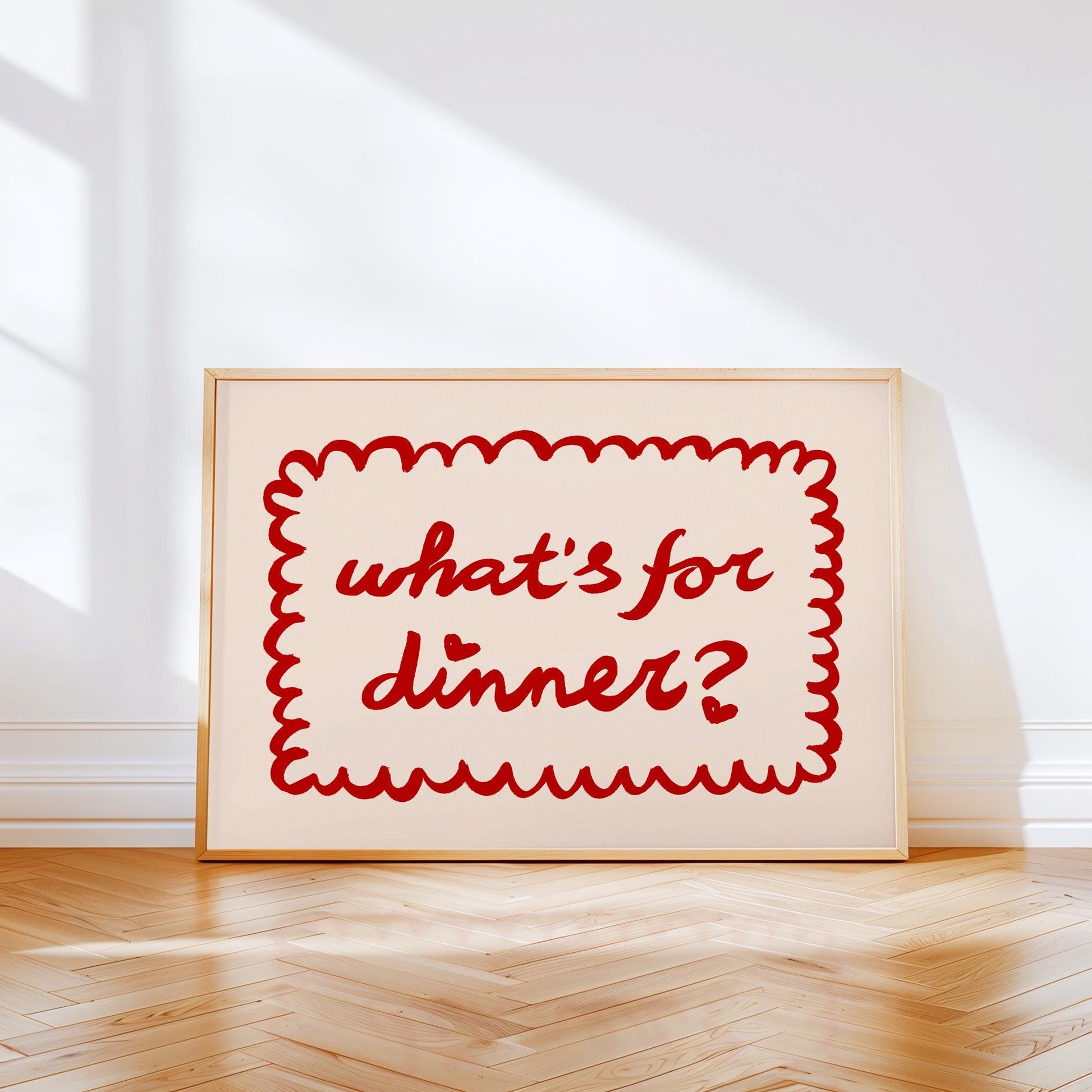 What‘s For Dinner Hearts Print, Dining Room Modern Typography Poster, Horizontal Wall Art, Aesthetic Kitchen Wall Decor in hand drawn illustration makes the perfect poster to add a touch of funky, eclectic & dopamine touch to your living room, bedroom or dining room walls.